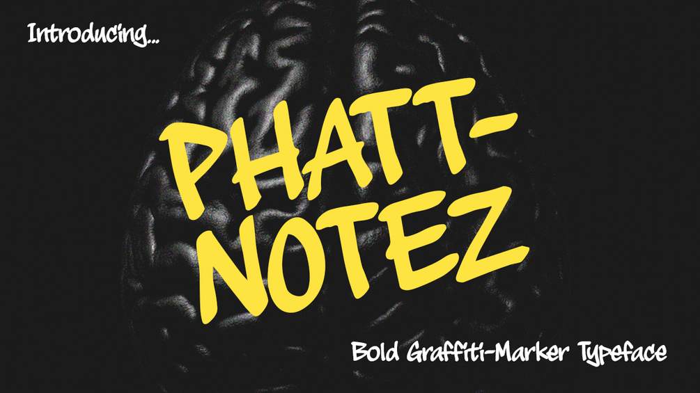 Phatt-Notez is a edgy, character-infused graffiti marker font, built for branding that slaps in an urban environment. Inspired by graffiti tags, gritty streets, and back-alley flyers. It’s perfect for magazines, apparel, logos, and anything that needs the rebellious expression only a hand-drawn font can deliver!